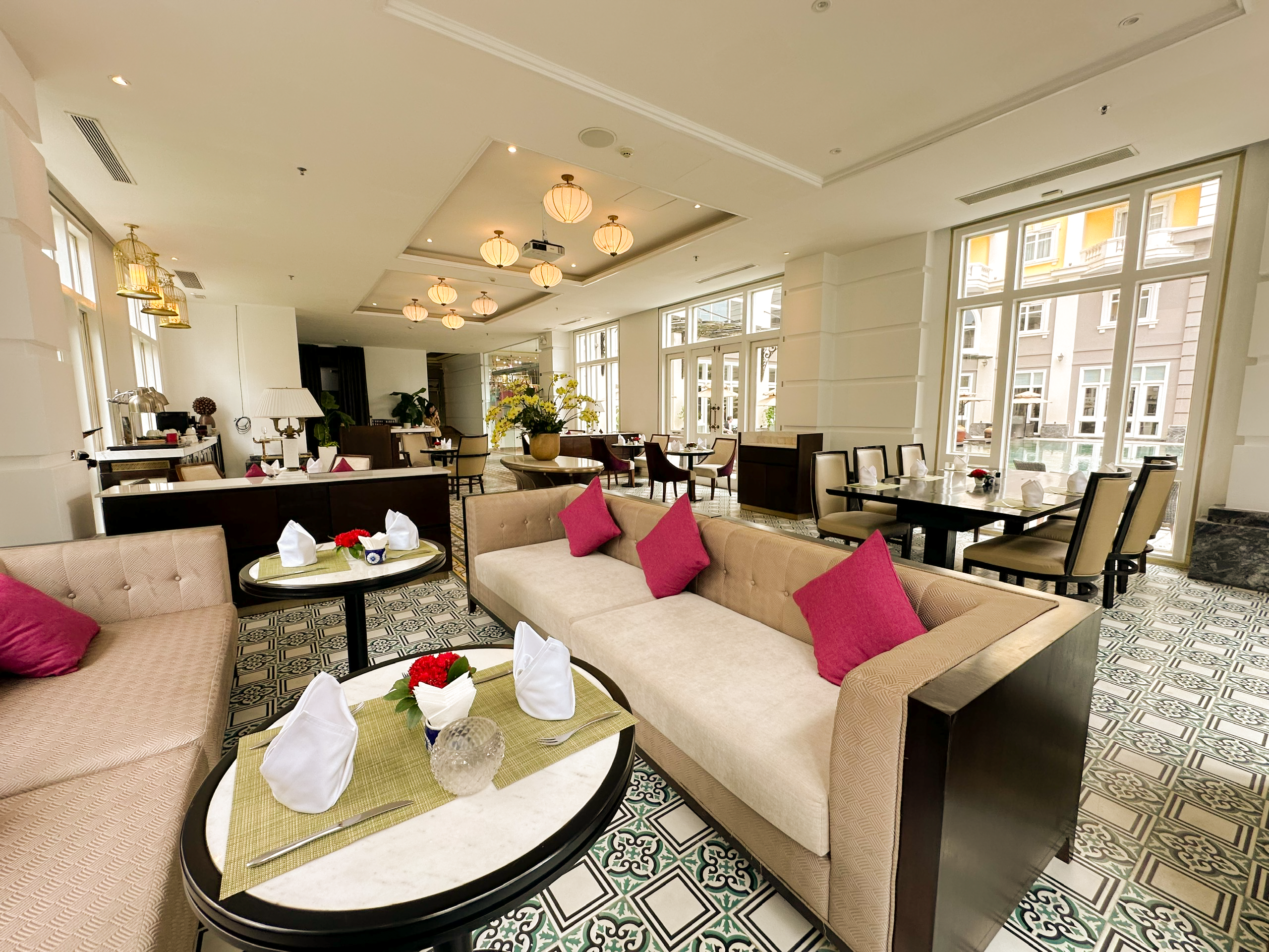 The restaurant offers a generous daily breakfast buffet, followed by a thoughtfully curated à la carte menu featuring Vietnamese, fusion, and international specialties for lunch and dinner.